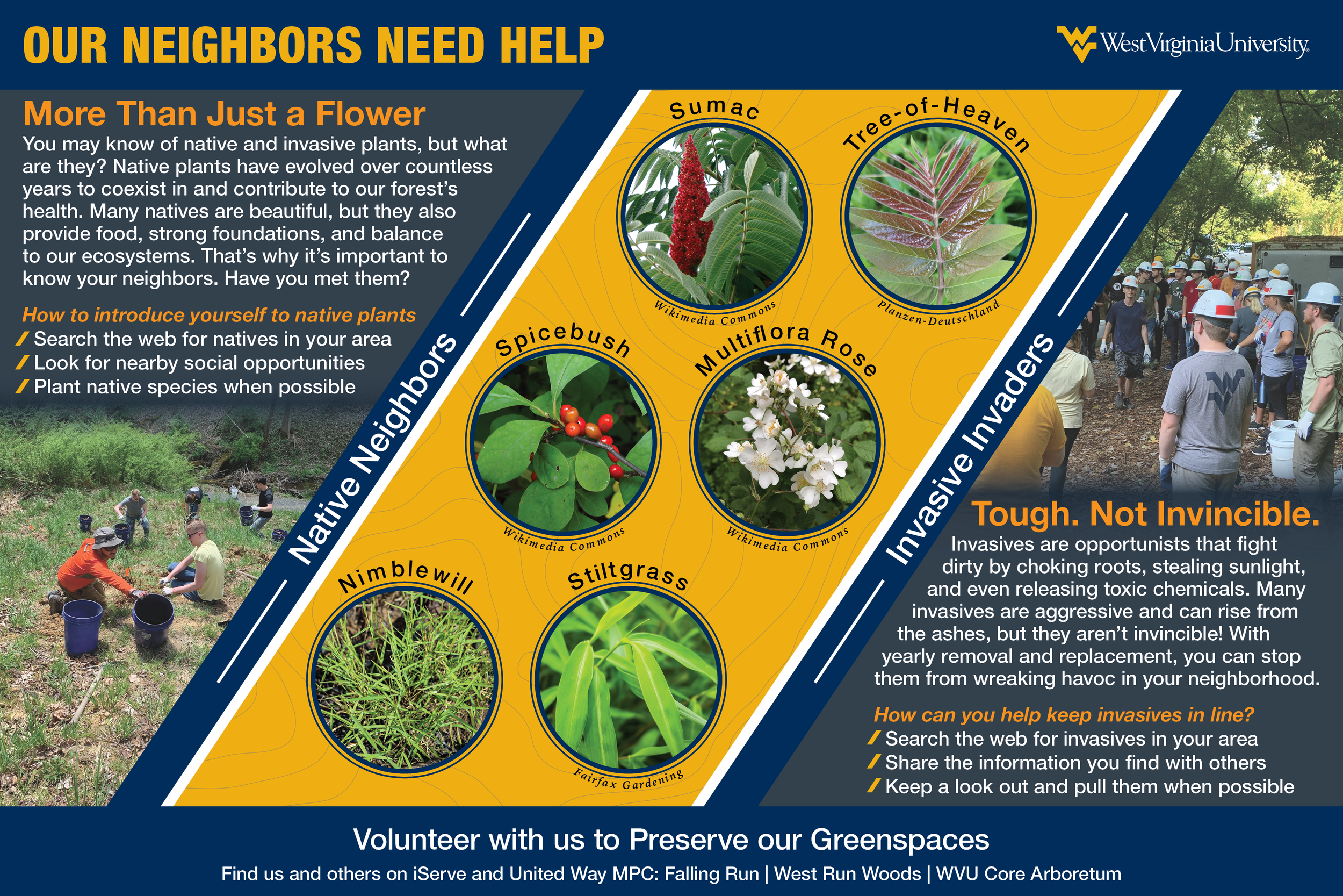 What began as an exercise in sign design has become a new project that hopes to be funded by West Virginia University grants. This anticipated project aims to renew the aging temporary signage that has served well past its intended use. The series will include a new orientation map, rules and regulations to be followed, and four seasonally-themed rotating interpretive signs.